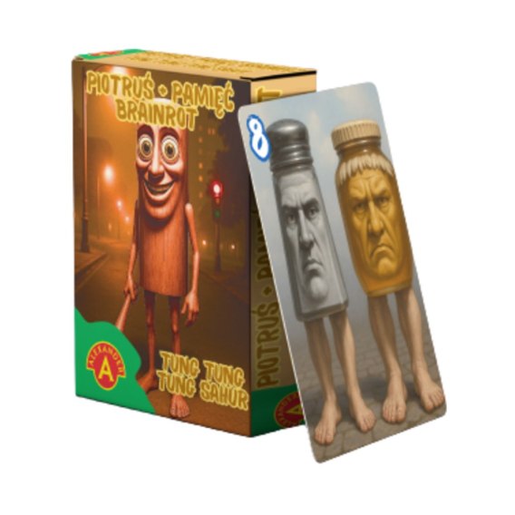 Ale najważniejsze – Piotrusiem jest tu Tung Tung Tung Sahur – legendarny bębniarz sahurów, który pojawia się, gdy tylko ktoś zbyt długo trzyma ostatnią kartę... i wtedy robi TUNG! TUNG! TUNG! aż w uszach dzwoni. Jeśli zostaniesz z nim na końcu – przegrałeś!