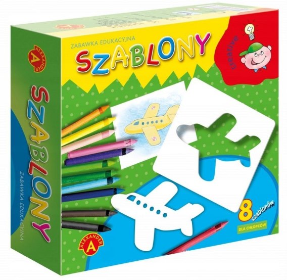 Zabawka składająca się z 8 szablonów, które przedstawiają 8 różnych postaci lub rzeczy. Dzięki nim, każde dziecko może w łatwy sposób odwzorować wybrany obrazek, pomalować i ozdobić dodatkowymi elementami.