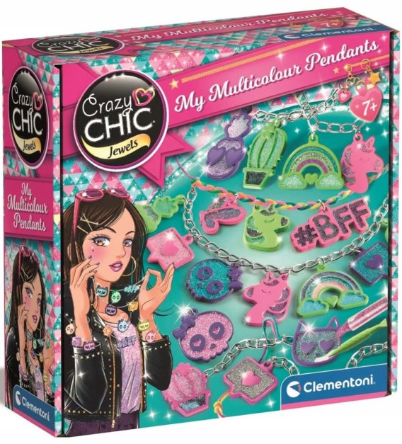 Nowa biżuteria Crazy Chic to eksplozja brokatu i zawieszek w modnym stylu. Zestaw zawiera metalowe łańcuszki i kółeczka, zawieszki o nowoczesnym i atrakcyjnym wzornictwie, wielobarwny sznureczek i kolorowy brokat.