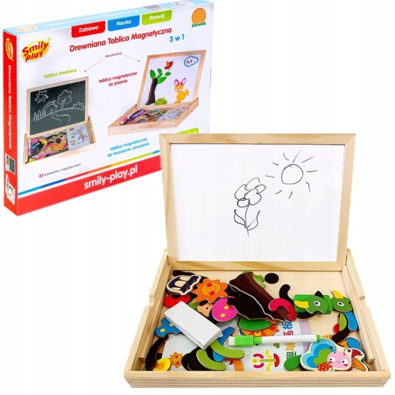 Drewniana tablica magnetyczna Smily Play 3w1 85 elementów