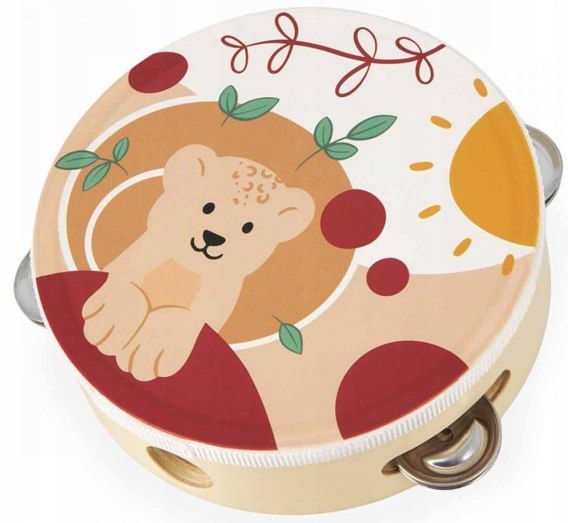 Drewniany tamburyn z serii Sunshine francuskiej marki JANOD to idealna pierwsza zabawka muzyczna dla dziecka, która pomaga rozwijać słuch, poczucie rytmu oraz zdolności muzyczne. Wspiera także rozwój wyobraźni, koncentracji, wytrwałości i koordynacji ruchowej. Instrument ma drewnianą konstrukcję i cztery pary metalowych talerzyków, poręczny rozmiar i piękną słoneczną kolorystykę – na membranie namalowany jest mały lewek Leo oraz grafiki w ciepłych barwach.