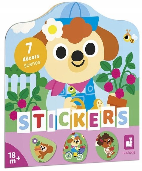 Książeczka do wyklejania z naklejkami Ogród francuskiej marki JANOD. Książeczka zawiera wewnątrz 7 różnych scen z pustymi miejscami do wypełnienia naklejkami. Dziecko może śledzić losy bohaterów opowieści – zwierzątek ogrodników – opowiadać o nich i jednocześnie samodzielnie uzupełniać ilustracje załączonymi do książki naklejkami (ponad 50 szt.).