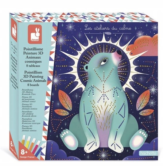 Janod Zestaw kreatywny Malowanie kropkami Puentylizm 3D Kosmiczne zwierzęta 8+