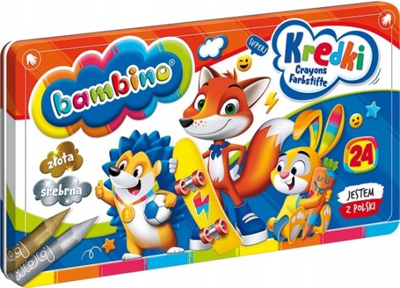 Kredki Bambino w Pudełku Metalowym, 24 kolory