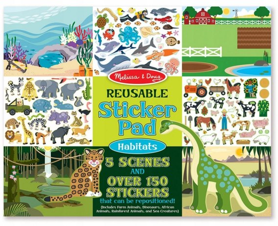 Błyszczące, pełnokolorowe tła są gotowe do wypełnienia ponad 150 naklejkami: Przyklej dinozaura do prehistorycznego stawu i rekina w oceanie - lub zmieszaj je i zrób śmieszne sceny! Łatwo obieralne naklejki winylowe można podnosić i ponownie ustawiać, dzięki czemu dzieci mogą nieustannie podążać za swoją wyobraźnią.