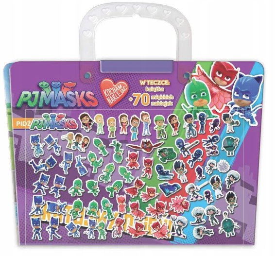 Książka activity poświęcona bohaterom uwielbianej przez dzieci bajki pod tytułem „PJ Masks Pidżamersi”. Na łamach publikacji zapakowanej w kolorową teczkę mali czytelnicy znajdą książkę o ulubionych bohaterach, 70 miękkich naklejek oraz tła na które można je nakleić.