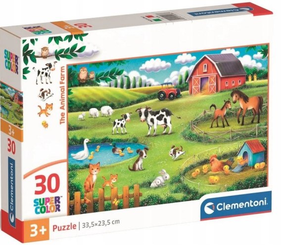 Puzzle 30 elmentów Zwierzęta na farmie 20286 Clementoni Super Kolor 3+