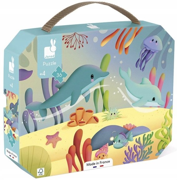 Puzzle w walizce Morskie stworzenia 36 elementów dla dzieci 4 lata+ Janod