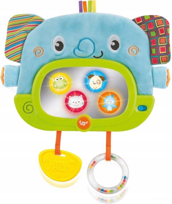• szeleści i grzechocze, gra melodyjki, pokazuje obrazki
