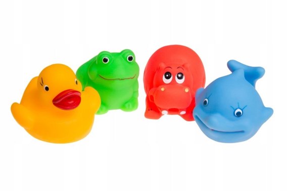Delfin, hipcio, żabka i kaczuszka to najlepsi przyjaciele Twojego maluszka. Będą się razem świetnie bawić zarówno w wannie, jak i podczas kąpieli w basenie.
